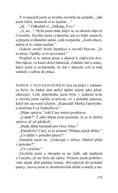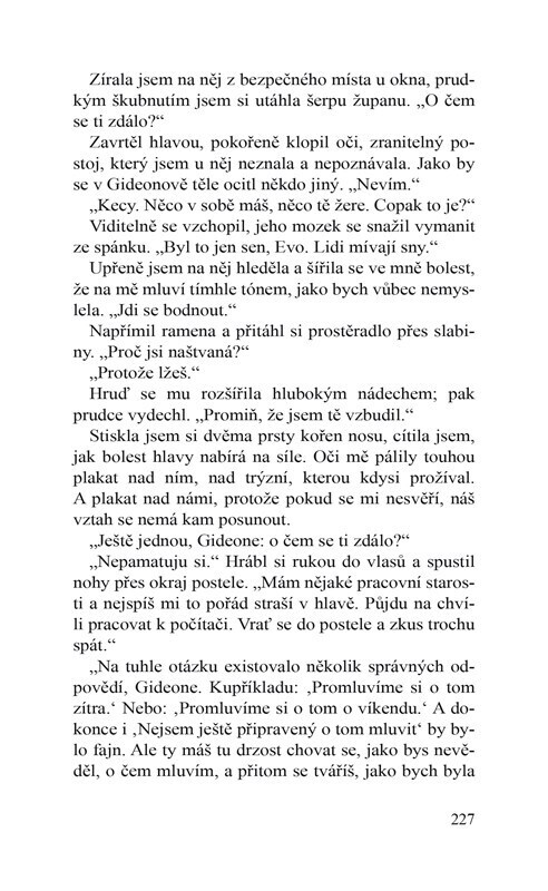 Gideon Cross vstoupil do mého života. Byl krásný a inteligentní, drsný a sexy. Přitahoval mě jako ještě nikdy nikdo a nic. Jeho dotek byl pro mě jako droga, i když jsem věděla, že mě oslabí. Byla jsem zraněná a traumatizovaná a on k mým trápením snadno pronikl… Gideon věděl. I on měl svoje...
