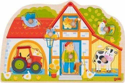 Jednotlivé dílky s obrázky mají úchytky, rozvoj koordinace oko-ruka, logického myšlení a představivosti, dřevěná podložka usnadňuje skládání a rámečky zajišťují, aby jednotlivé dílky držely na svých místech. GOKI patří mezi nejvýznamnější evropské výrobce hraček s vysokou pedagogickou a...