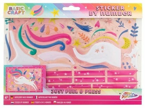Na obrázek s natištěnými čísly nalepte očíslované samolepky. Vznikne krásný barevný obrázek jednorožce. Věk: 4+