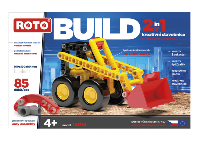 Na žádné stavbě nesmí chybět pořádný bagr. ROTO 2v1 - vstupní brána do světa snadného skládání složitých věcí. Libovolně kombinovatelné s dalšími stavebnicemi ROTO. Vyrobeno v ČR z vysoce kvalitních plastů. Obsahuje 85 dílků.