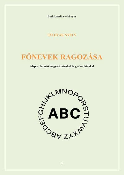 Skloňovanie podstatných mien. Kniha má 107 strán (A4), vo forme PDF, v knihe je veľmi podrobne po maďarsky vysvetlené skloňovanie slovenských podstatných mien, čiže kniha je 50 % po slovensky a 50 % po maďarsky (aké koncovky majú...