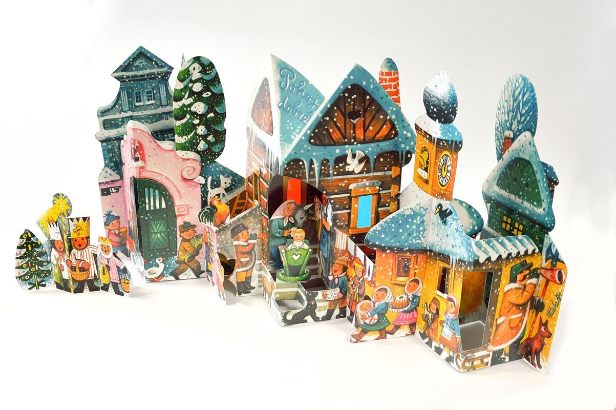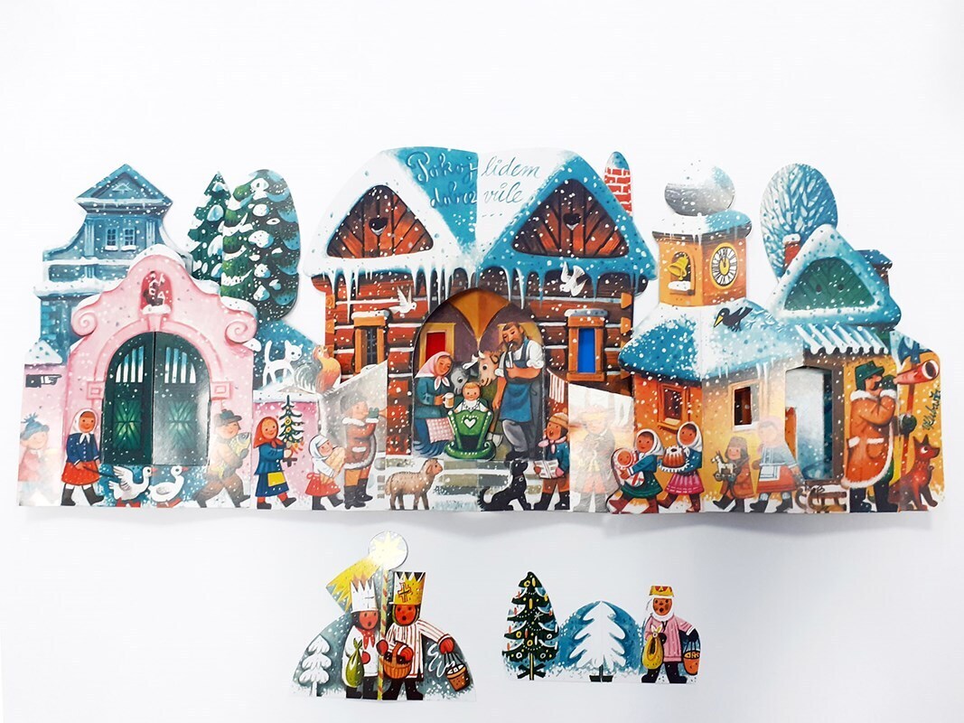 Další z řady vánočních prostorových betlémů, který se jmenuje Pokoj lidem dobré vůle od geniálního ilustrátora a tvůrce knih pro děti Vojtěcha Kubašty.