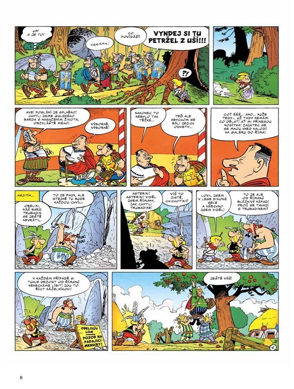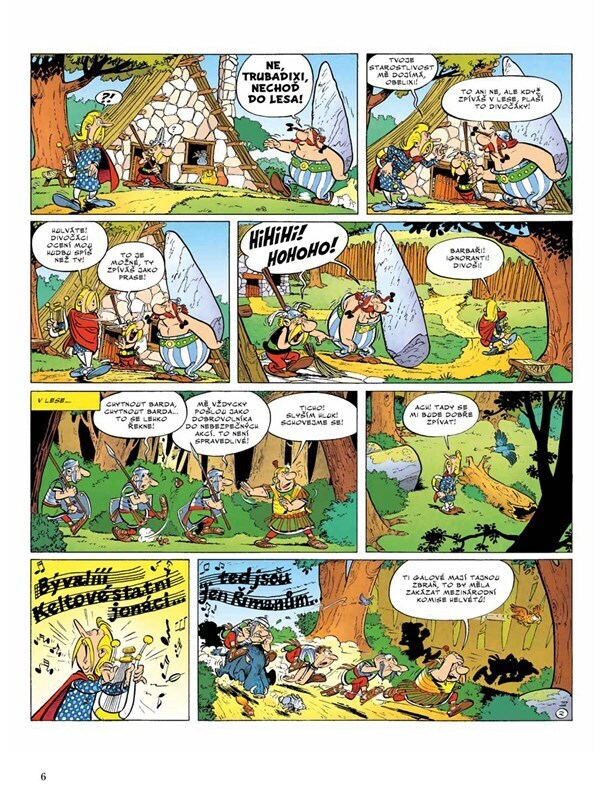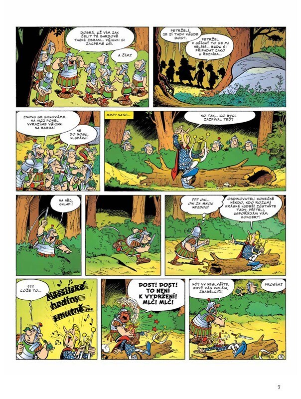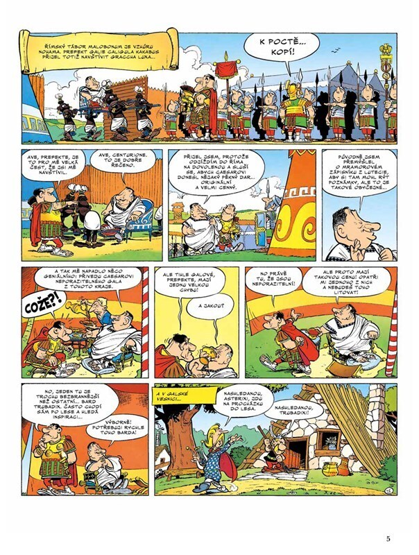 Prefekt Galie se rozhodne přivézt Caesarovi originální dárek: hrdého barda Trubadixe, který sice neumí vůbec zpívat, ale zato je velice oblíbený u obyvatel jedné vzpurné galské vesničky. Asterix a Obelix spěchají do Říma, aby uneseného barda zachránili, a na místě zjistí, že Trubadix má být za...
