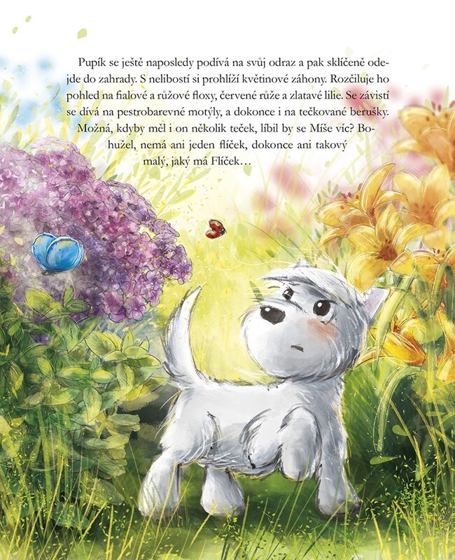 Znáte toho rozpustilého teriéra s veselýma očima a roztomilým černým čumáčkem? To je Pupík, který své kamarádce Míše pomáhá vést veterinární kliniku. Společně se starají o zvířátka, která potřebují pomoc. Zajímá vás, co Míšu a Pupíka čeká? Jednoho dne Míša začne obdivovat barevné ptáky a Pupík...