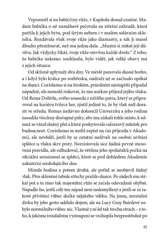 Je ráno v Den sklizně, který zahajuje desáté Hladové hry. Osmnáctiletý Coriolanus Snow se v Kapitolu připravuje na svou jedinou příležitost získat slávu jako trenér, jeho šance jsou však mizivé. Dostal ponižující úkol trénovat největšího outsidera, splátkyni z Dvanáctého kraje. V aréně bude...