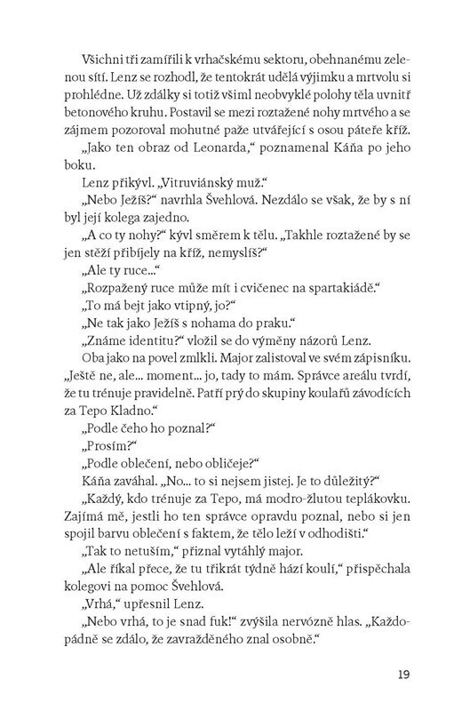 Kapitán Lenz si u svých kolegů z pražské kriminálky za necelých patnáct let služby vydobyl značný respekt – nejen svým vyšetřovatelským instinktem, ale také díky sportovním výkonům na běžeckých tratích. Když je proto na kladenském stadionu nalezeno tělo mladého atleta v poloze da Vinciho...