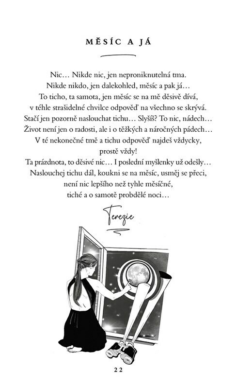 Tato básnická sbírka představuje prožívání lidí s psychickým onemocněním, reálně a bez příkras, a je doplněna o komentáře odborníků. Obsahuje básně psané během hospitalizace i doma, najdeš zde smutné básně protkané slzami, psané v náročném období, ale i básně vzniklé ve světlejších okamžicích...