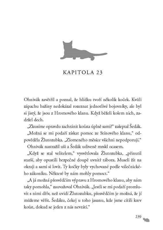 Čtyři klany divokých koček si odedávna dělí území lesa podle zákonů, které stanovili kdysi dávno jejich předkové-válečníci. Kočkám Hromového klanu však nyní hrozí nebezpečí, protože bojovníci ze Stínového klanu jsou den ode dne silnější. Umírá jeden ušlechtilý kočičí válečník za druhým, a za...