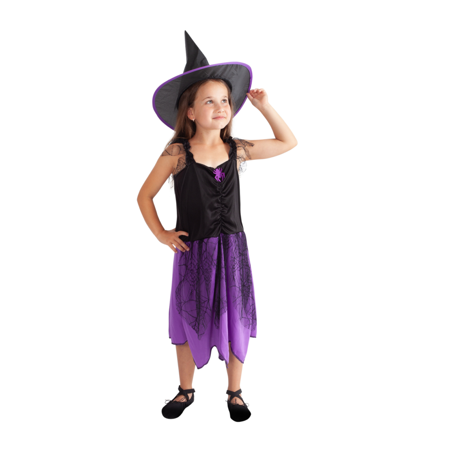 Roztomilý karnevalový kostým černo-fialové barvy udělá radost každé holčičce! Souprava obsahuje šaty dekorované pavučinkou a perfektně sladěný klobouk. Set ve velikosti M je určen pro holčičky ve věkovém rozmezí 6-8 let. Vhodný i na oslavu Halloweenu! Nejen letos je potřeba myslet EKO-nomicky i...