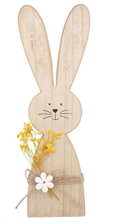 Zajíc dřevěný s kytkou na postavení 8 x 30 cm