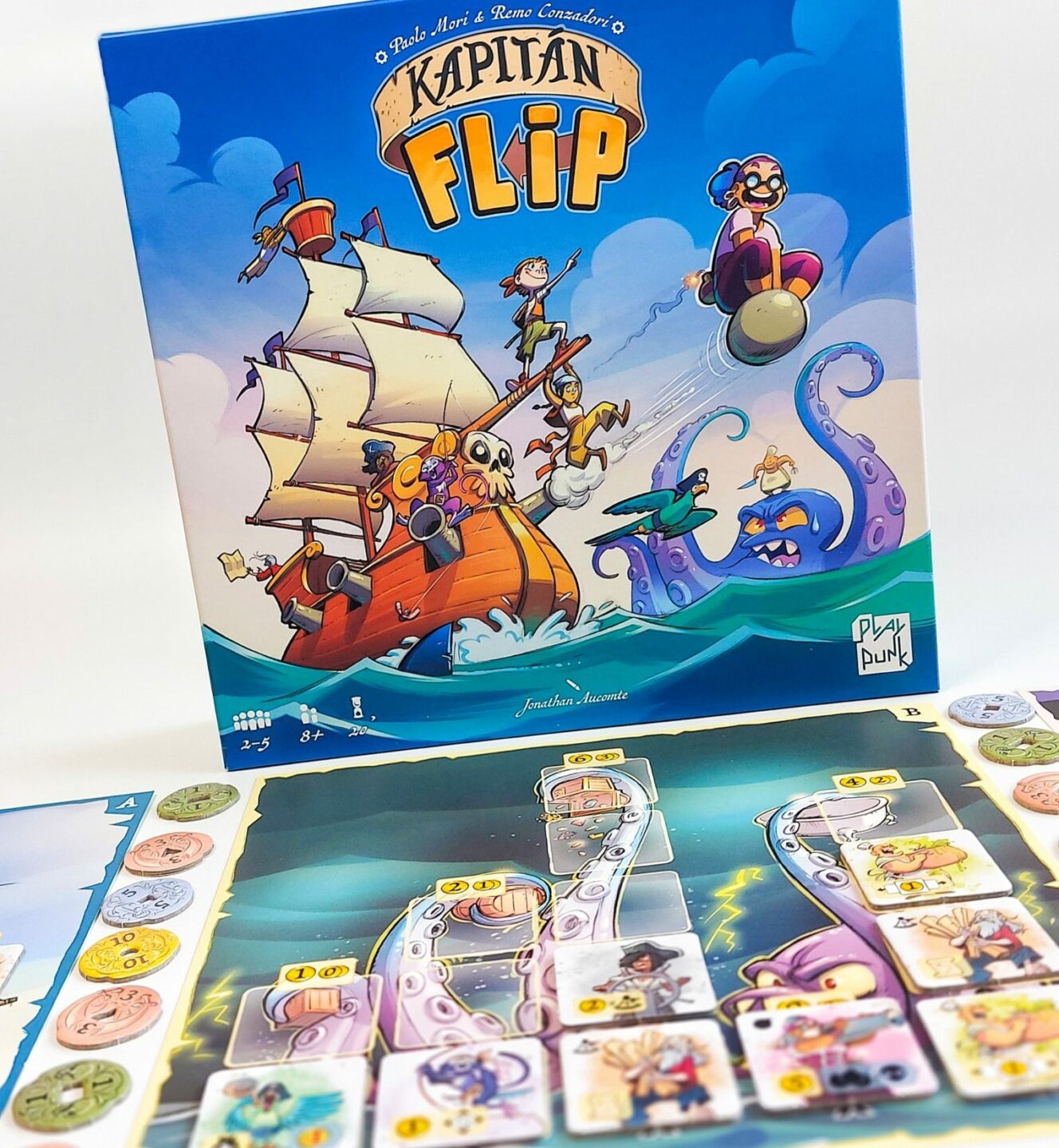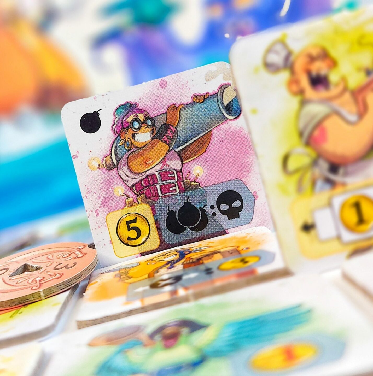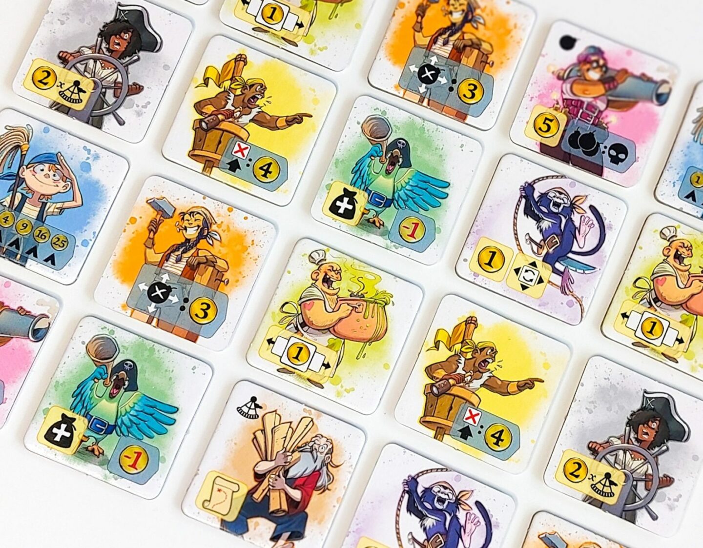 Najměte si Střelce, Papouška, Navigátora, Hlídače nebo třeba Kuchaře… Sbírejte mince, ale dávejte si pozor na výbuch! Vyhrává pirát, který získá největší poklad. Jak hrát? 1) Doberte si nový dílek postavy. - Na každém dílku se nachází z obou stran jiná postava. - Na