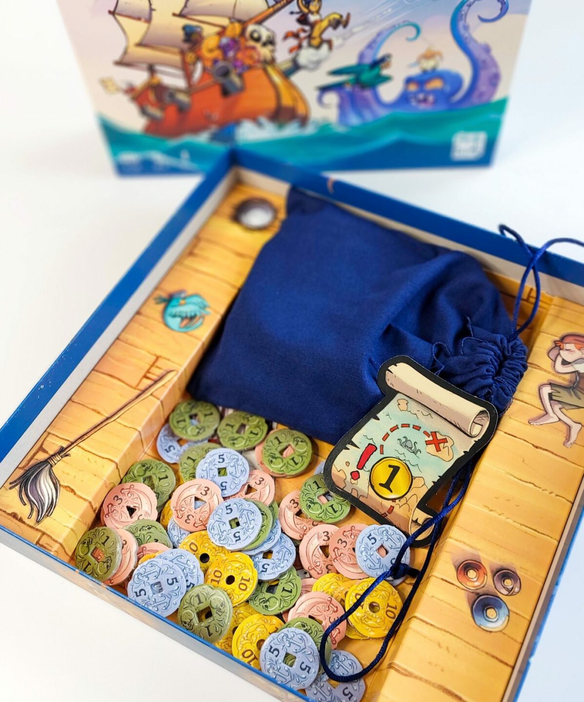 různé desky dobrodružství pro větší rozmanitost hry. Obsah balení: 72 dílků postav 40 mincí 1 velký žeton Mapy pokladu 1 látkový pytlík 3 nápovědy pro hráče 10 desek dobrodružství 1 česká a slovenská pravidla