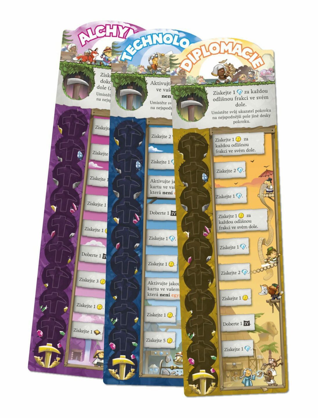 pozůstatků prastarých civilizací a hrozivých nestvůr. Musíte kopat, co nejhlouběji dokážete, a prozkoumat tyto divy pro slávu vašeho impéria! Horníci impéria je rychlá hra založená na principu umísťování karet, ve které soupeříte o to, kdo vybuduje nejvýnosnější důl! V