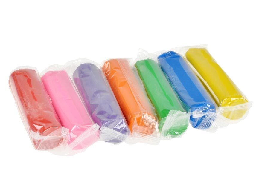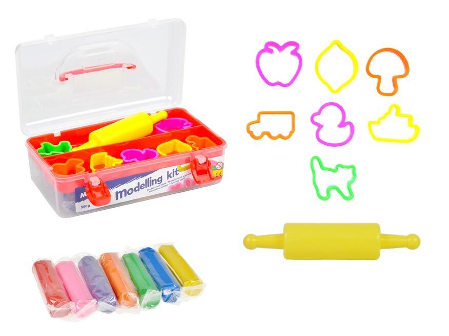 Modelovací hmota 7 barev 550g + 7 tvořítek a váleček