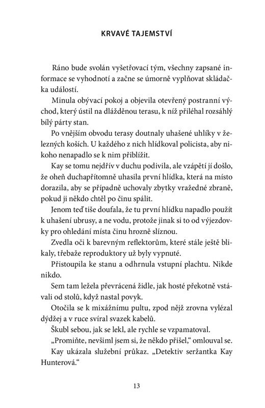 Večírek na zahradě kentského zámečku se nečekaně zvrtne, když je objevena mrtvola šestnáctileté Sophie, na jejíž počest se slavnost konala. Přestože se nejdřív zdá, že policie jde na jistotu, podezřelých je nakonec mnohem víc. Aby Kay Hunterová zjistila, kdo za vraždou stojí, musí odhalit temná...