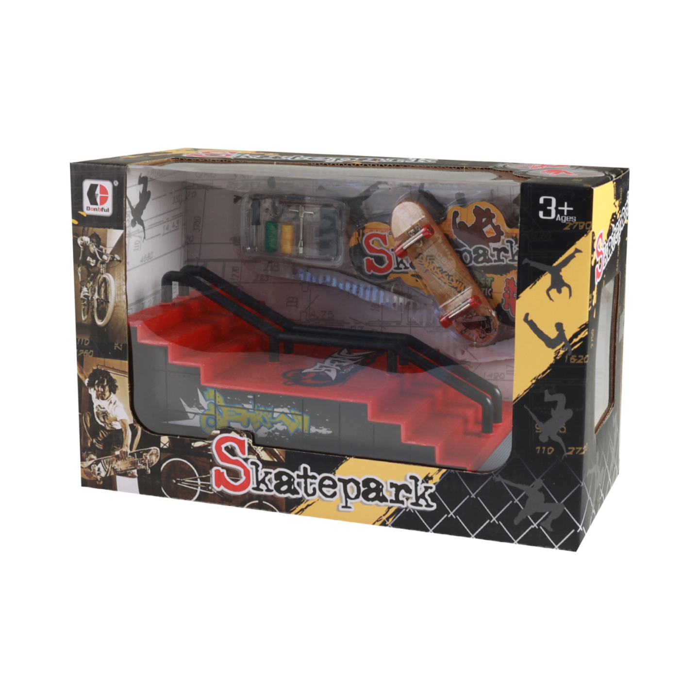 Vlastní skatepark se schodištěm a zábradlím, tak to je paráda! Učte se nové triky s figerboardem. Součástí balení je 1 skateboard/fingerboard šroubovací s příslušenstvím. Design se může lišit od vyobrazení.