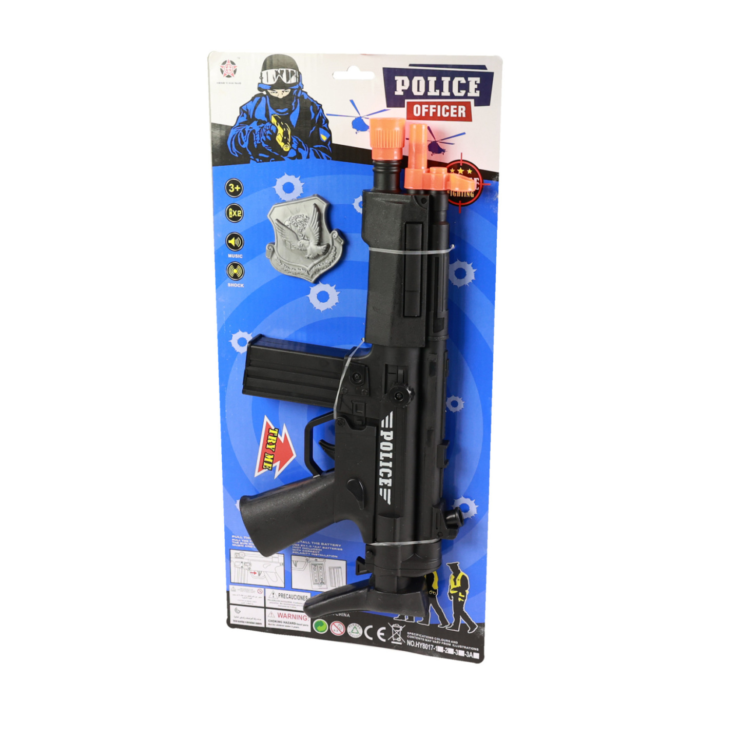 Popadni samopal, zamiř a střílej! Tuhle policejní akci určitě zvládneš na jedničku! Tento samopal po zmáčknutí spouště vydává reálné zvuky, k tomu jsou zapotřebí 2 ks baterií typu AA, které nejsou součástí balení!