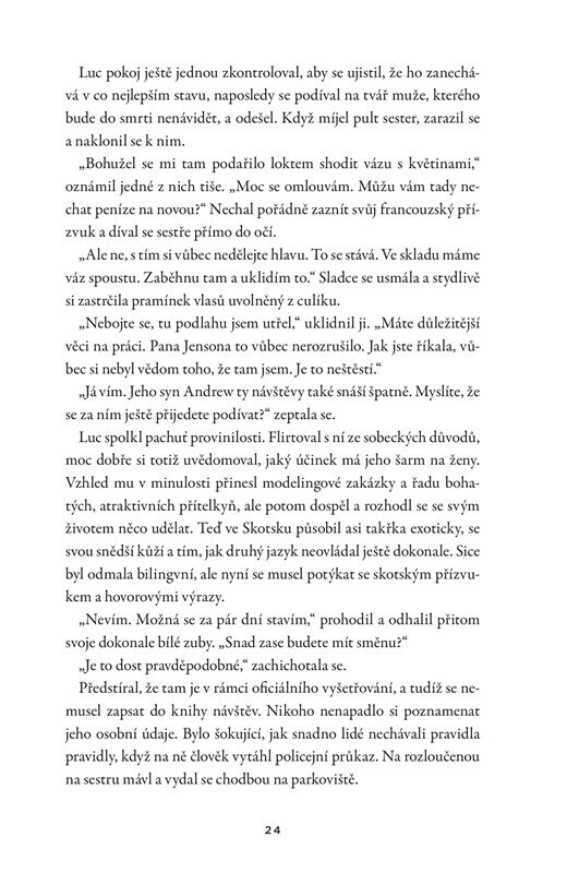 Mrtvola nalezená pod útesem. Žena s podřezanými žílami ve vaně. Muž zabitý elektrickým proudem. Série podivných sebevražd přivede vyšetřovatele Luca Callanacha a Avu Turnerovou k myšlence, že za činy se skrývá sériový vrah s mrazivou schopností zinscenovat místo neštěstí. Jak si vybírá své oběti...