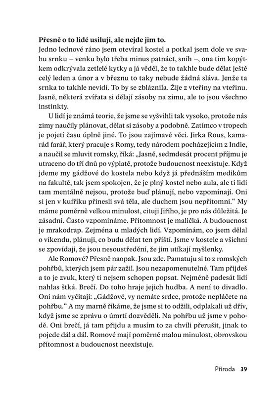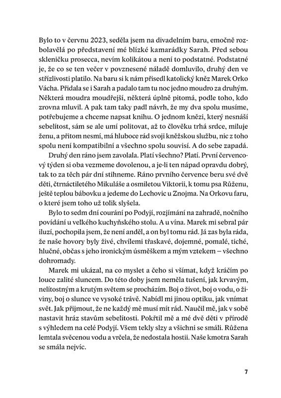 Tahle kniha vznikala při putování Podyjím, při rozjímání na zahradě jedné fary i dlouhých hovorech u vína. Když se potká novinářka, co se umí ptát, a kněz, lékařský etik a přírodovědec, který má co říct, vznikne hluboký, třaskavý a místy dojemný dialog. Něco jako dvojitá osobní zpověď. Třeba o...