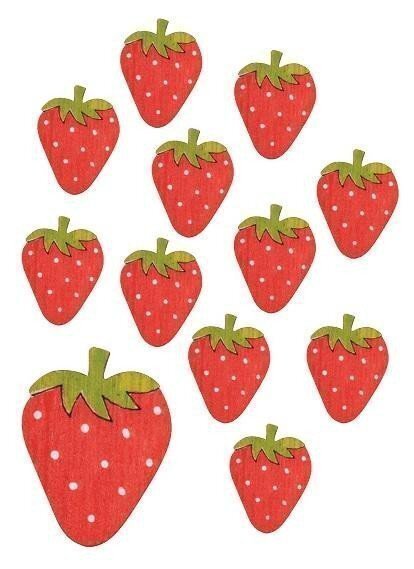 Jahody s lepíkem dřevěné 3 cm, 24 ks v krabičce...