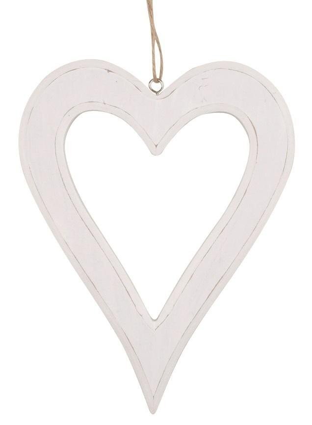 Srdíčko dřevěné bílé na zavěšení 19,5 cm