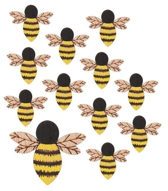 Včela dřevěná s lepíkem 4 cm, 12ks v sáčku