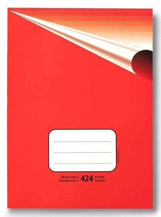 Klasický školní sešit číslo 424, formát A4, 30 listů, linkovaný, 8 mm linky. br brŠkolní sešity mají pevnou papírovou obálku v klasickém retro designu. Na přední obálce je několikařádkový prostor pro nadepsání jména a příjmení, třídy nebo školního předmětu. br