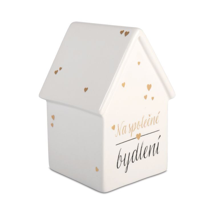 Chystáte se na svatbu a hledáte originální způsob, jak novomanželům darovat peníze a splnit jim tak sen o bydlení? Tato keramická pokladnička bude tou správnou volbou. Rozměry: 9 cm × 15 cm × 10 cm Materiál: keramika