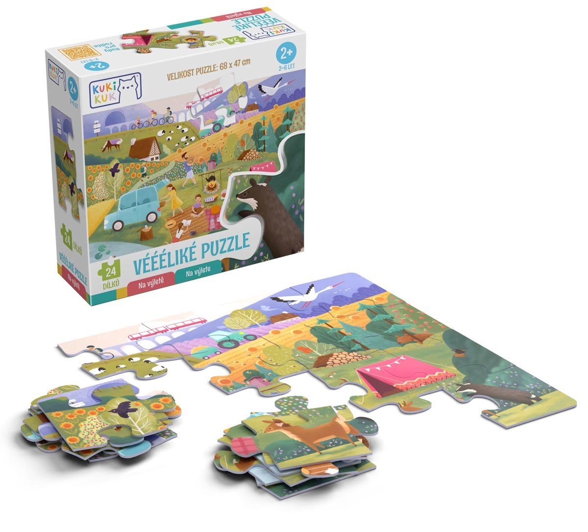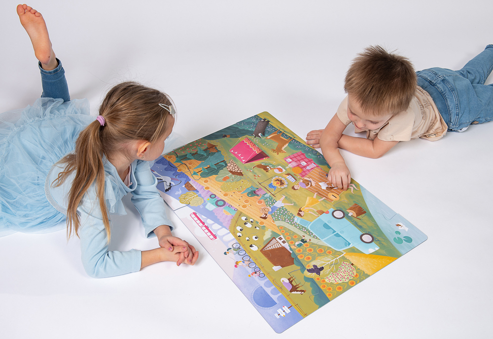 • 24 velkých oboustranných puzzle dílků - složený obrázek 67,5x47 cm