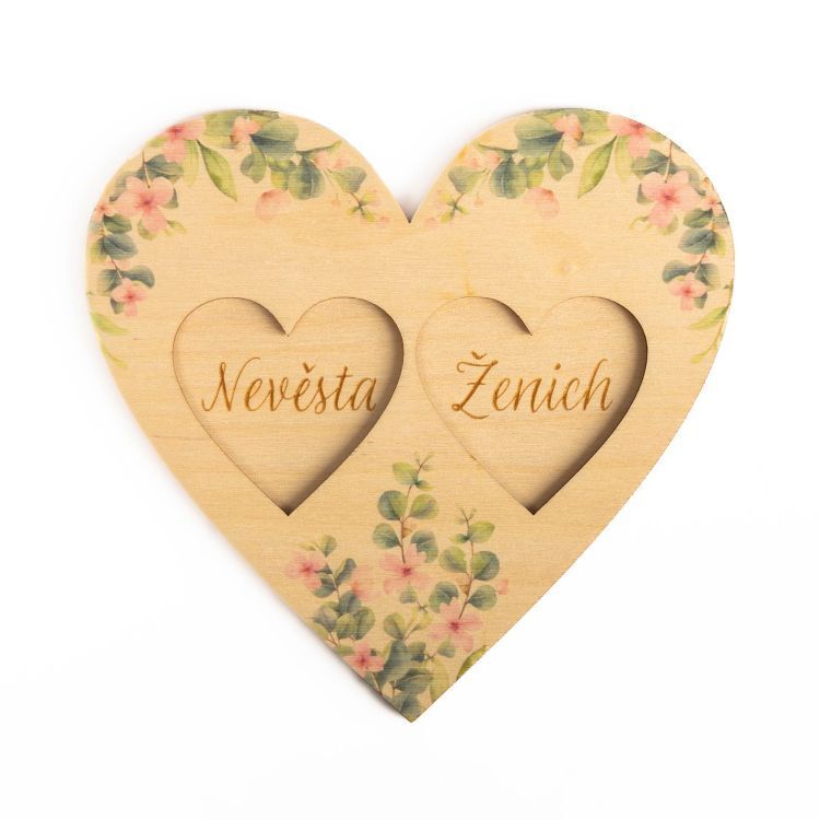 Tácek na snubní prstýnky pro nevěstu a ženicha. Rozměry: 15 × 14 cm
