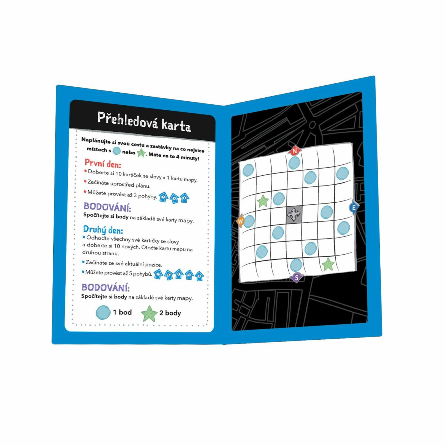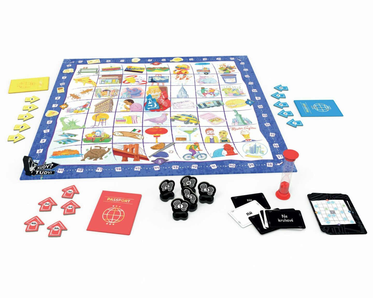 se ztratí v překladu! Ve hře „Kudy? Tudy!“ se s kamarády vydáte na dvoudenní výlet do úžasného velkoměsta. Každý hráč má vlastní tajnou mapu míst, která chce navštívit, ale bude potřebovat pomoc od ostatních hráčů, aby se k nim dostal. Budete se střídat na tazích a