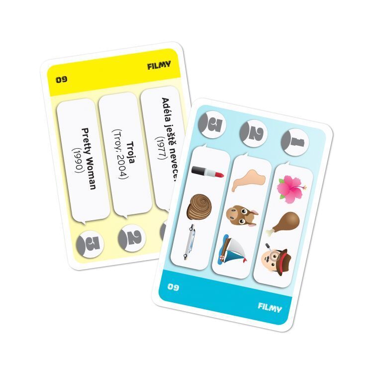 Smajlíkarty jsou svižná kvízová hra na cesty. Úkolem hráčů je rozpoznat názvy filmů na základě nápověd v podobě smajlíků. Ve hře najdete také 10 freestyle kartiček pouze s jediným smajlíkem. Můžete tak sestavit vlastní kvízy. Hra obsahuje: 40 kvízových karet, 10 freestyle karet, pravidla....