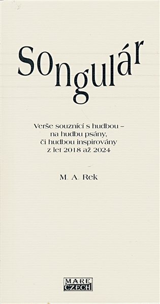 Ve své devátá sbírce poezie Songulár autor M. A. Rek nabízí "verše souznící s hudbou". Tedy verše přímo na hudbu psány, nebo které byly hudbou inspirovány. Vlastní texty i přepisy písní vznikaly v letech 2018 až 2024. Knihu tematicky doplňují fotografie a koláže s podpisem...