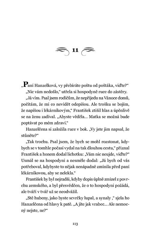 Po studiích a dvouleté praxi v otcově pražské lékárně se František vydal za prací do Štramberka. Tíží ho zdravotní problémy a tajemství, která mu nedají spát. I ve zdánlivě poklidném městečku, kde se chtěl věnovat studiu přírody a zotavit se, však narazí na znepokojivou záhadu. Pronásleduje...