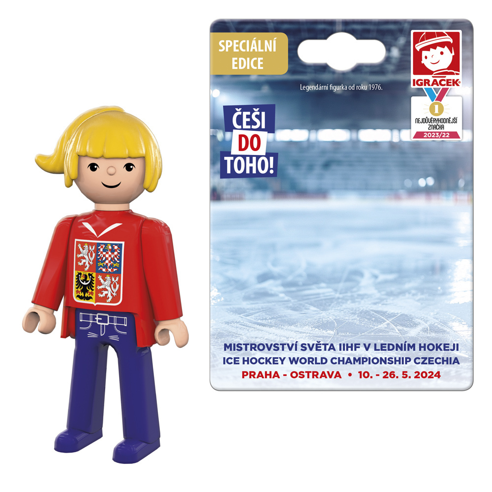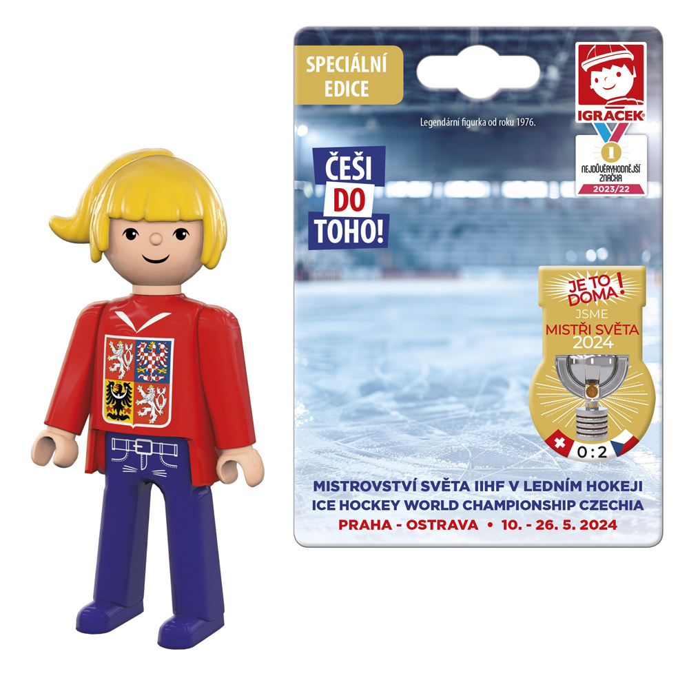 Pozn.: Typ a barva vlasů se může lišit od zobrazení ve fotogalerii.Česká republika se po devíti letech opět dočkala a tento rok pořádá Mistrovství světa v ledním hokeji 2024. A to bychom nebyli my, abychom pro tuto výjimečnou příležitost nevyrobili speciální edici Igráčků. Ta potěší hokejové...