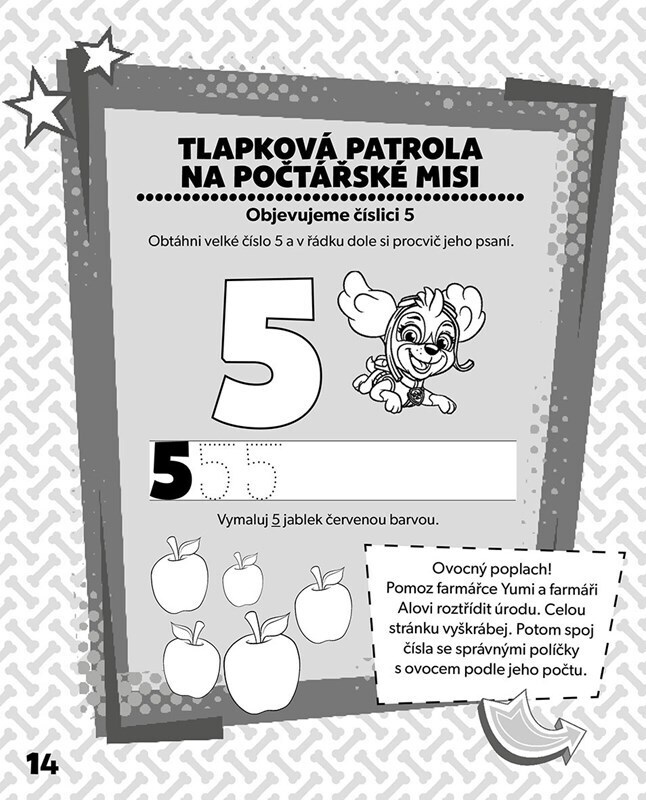 Vydejte se s Tlapkovou patrolou na početní misi a odhalujte obrázky v knížce setřením černé vrstvy přiloženým bambusovým škrabátkem. Na každé stránce vás čekají hravé úkoly, se kterými si procvičíte počítání, číslice a první příklady. Na pomoc vám vždy přispěchají oblíbené tlapky! Díky nim bude...