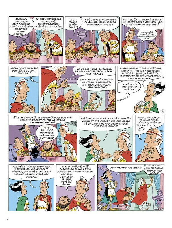 Caesar se potýká s masovou neposlušností v římské armádě. Jeho hlavní lékař Pravdolascus mu proto navrhne metodu pozitivního myšlení, kterou nazývá „Bílý kosatec“. Netrvá dlouho a revoluční přístup nese ovoce v první legii: vojáci si opakují duchaplné afirmace, poznávají své vnitřní já a...