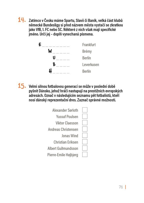 Prověříš i podruhé, kolik toho skutečně víš o fotbale? Ano, i tentokrát se bude hodit vědět něco o Ronaldovi, Messim nebo české lize. Jenže tak snadné to opět nebude. Víš, který anglický klub hraje své domácí zápasy na skromném stadionu Kenilworth Road? Kde všude trénoval kouč pyšnící se...