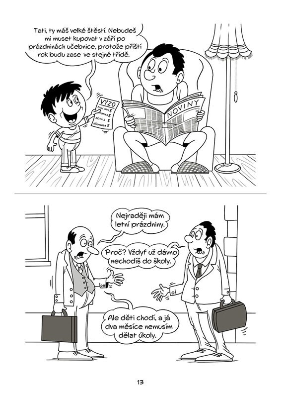 Ilustrovaná kniha plná vtipů udělá radost všem. Věděli jste, že během smíchu se mozku dostává až pětkrát více kyslíku než při obvyklém dýchání a dochází při něm k dokonalé synchronizaci mozkových hemisfér? Doporučujeme tedy číst tuto knihu i o přestávkách ve škole. O hodinách vám to pak bude víc...