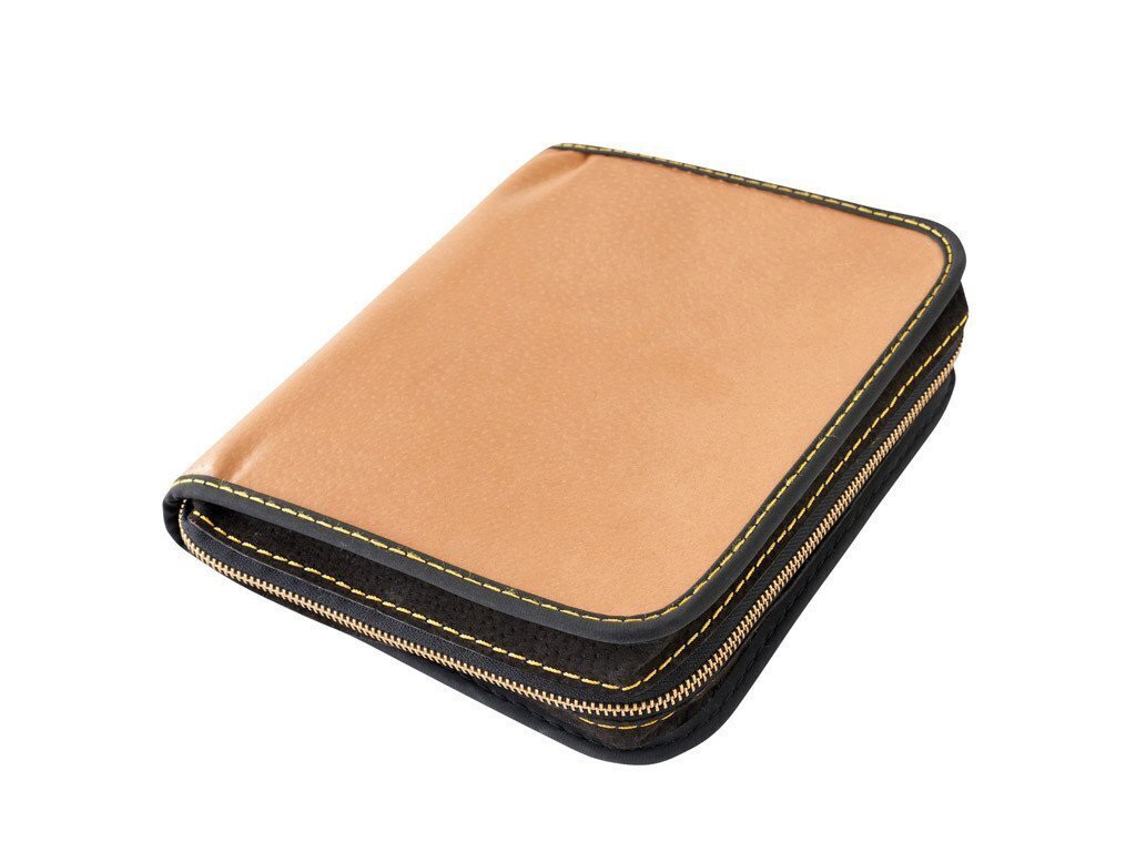 Přírodní kůže, kovový zip, ruční práce. Vhodné pro knihy o maximálních rozměrech: Výška: 22 cm, Šířka (součet 2x šířka + hřbet...