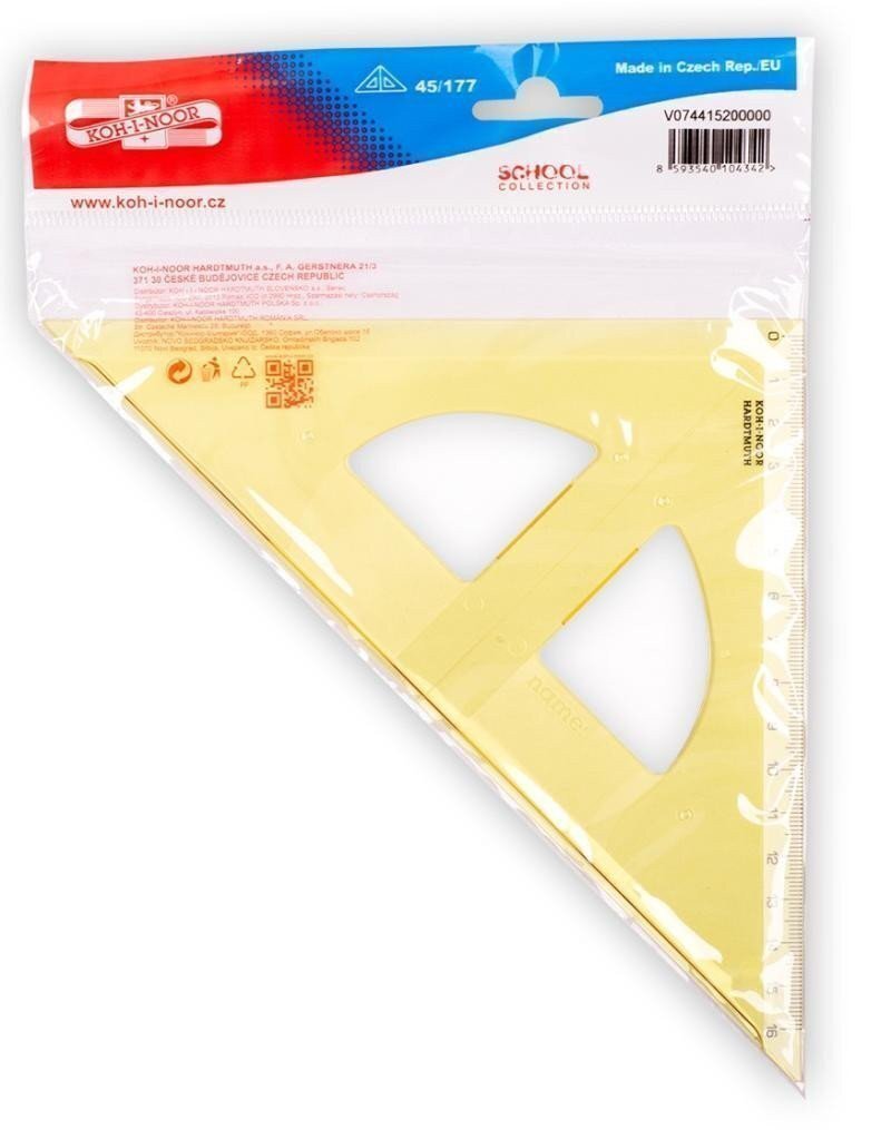 Trojúhelník 45/177 s kolmicí vyrobený ze žlutého průhledného polystyrenu. Stupnice je naražena technologií horké ražby. Přesnost...