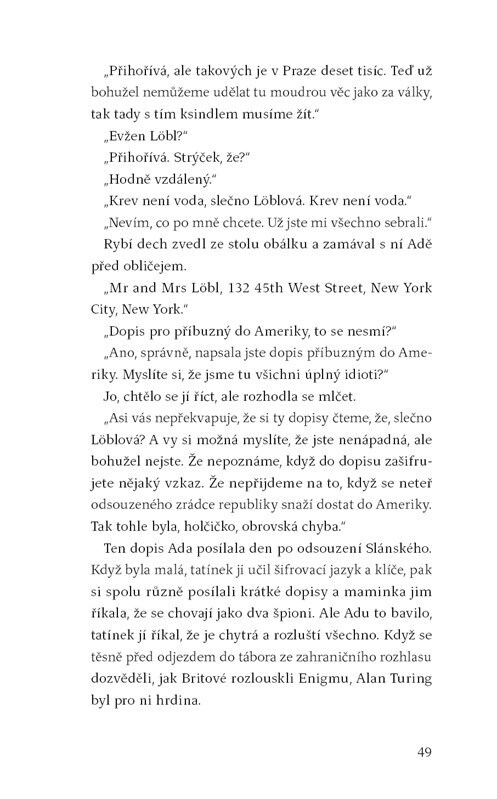 Mladá Židovka Ada si svůj život po válce představovala jinak. Byla nucena odejít z vysněné školy, stará se o nemocnou matku a zjišťuje, že komunisté mají s jejím původem stejný problém, jako měli nacisté. Když se jí naskytne příležitost svůj život změnit za cenu morálního selhání, stojí před...