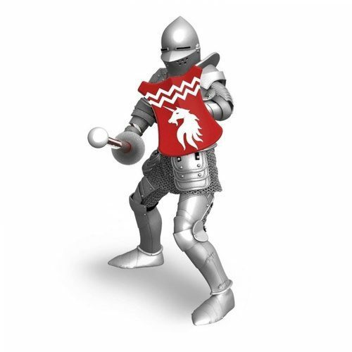 Krásně zpracovaná figurka rytíře s kopím a červeným štítem.
