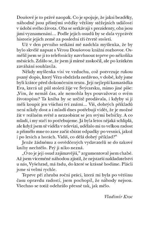 Život Věry Doušové byl mimořádně bohatý – jak na události pozitivní, tak na ty pohnuté. Byla disidentkou a celoživotní kamarádkou Jiřiny Šiklové, se kterou šířila samizdatovou literaturu. Po nezdařeném pokusu o emigraci přijala místo účetní u Československého lunaparku. Po revoluci asistovala s...