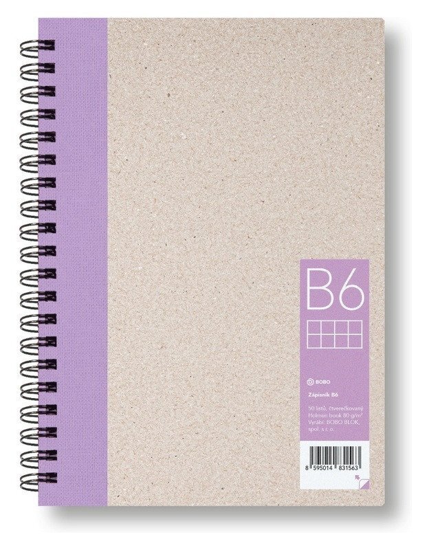 kreslení. br brZápisník, čtverečkovaný, B6 br• Formát: B6 br• Lineatura: Čtverečkovaná br• Počet listů: 50 br• Papír: Holmen Book Cream 80g br• Vazba: Dvojitá kroužková spirála Twin Wire br• Pevné desky vyrobeny z papírové lepenky br• Barevné knihařské plátno br
