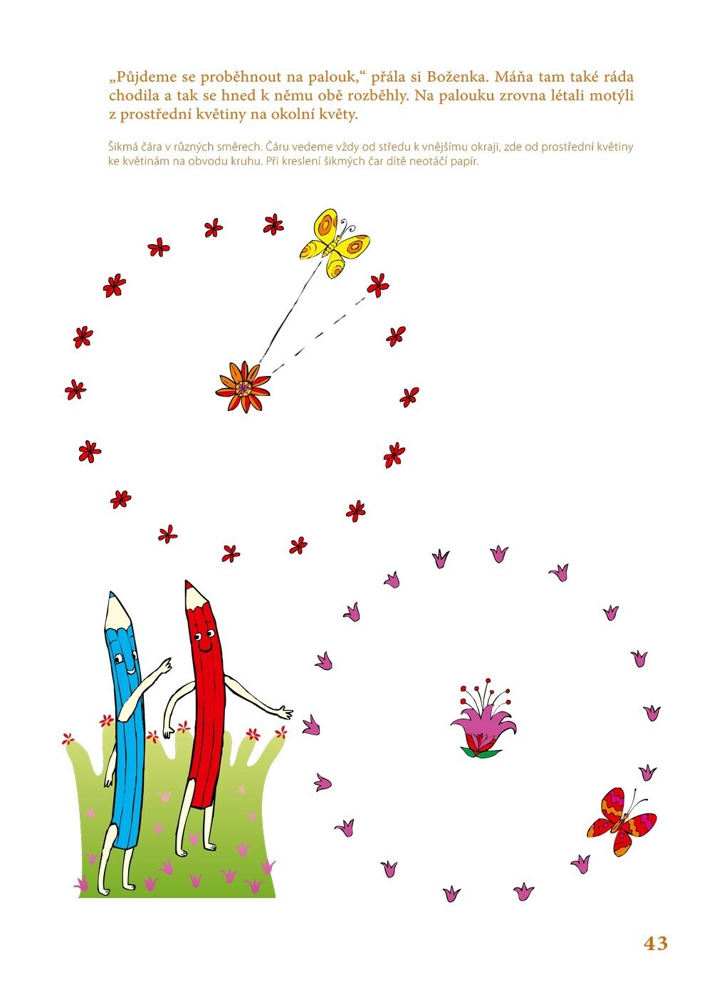Pracovní sešit obsahuje systém grafomotorických cvičení, vycházející z posloupnosti vývoje dovedností dítěte. Cvičení postupují od nejjednodušších prvků, které se v kresbě dítěte objevují nejdříve, a přecházejí k obtížnějším. Materiály přinášejí podněty k získání dovednosti, jejímu procvičování...