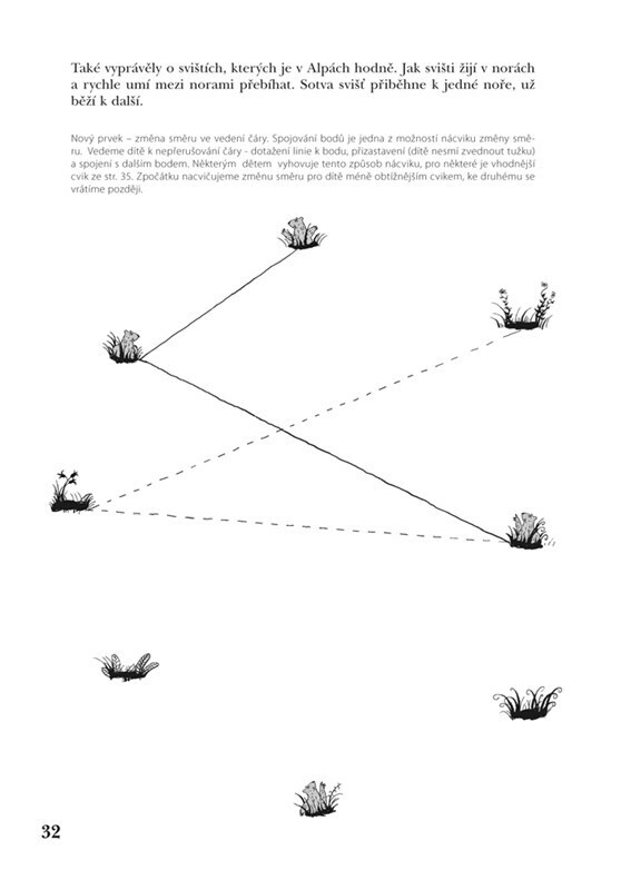 Pracovní sešit obsahuje systém grafomotorických cvičení, vycházející z posloupnosti vývoje dovedností dítěte. Cvičení uváděná v publikaci postupují od nejjednodušších prvků, které se v kresbě dítěte objevují nejdříve, a přecházejí k obtížnějším. Materiály přinášejí podněty k získání dovednosti,...