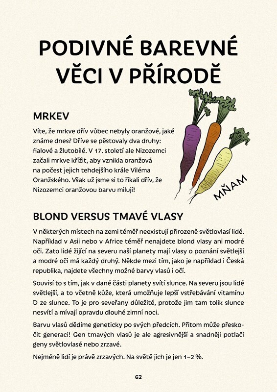 Co vás napadne, když se řekne BARVY? Tempery, vodovky, možná pastelky... prostě výtvarná výchova? Milá průvodkyně této knihy, Bětka Všudybýlková, vám ukáže, že svět barev je daleko pestřejší a nejde v něm jen o malování! Jak s barvami souvisí černobílý film, indický festival nebo třeba mumie?...