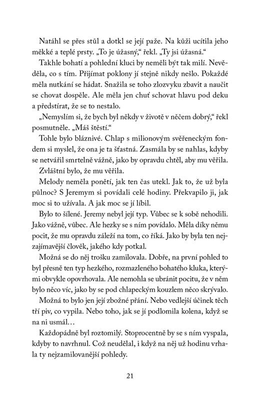 Setkání studentky Melody s okouzlujícím Jeremym skončilo úletem na jednu noc. A tak to mělo zůstat. Jenomže když se Melody o tři roky později stěhuje do Los Angeles za prací, neodolá pokušení Jeremyho kontaktovat. Jako by nestačilo, že je dědicem technologického impéria, kam má Melody nastoupit...
