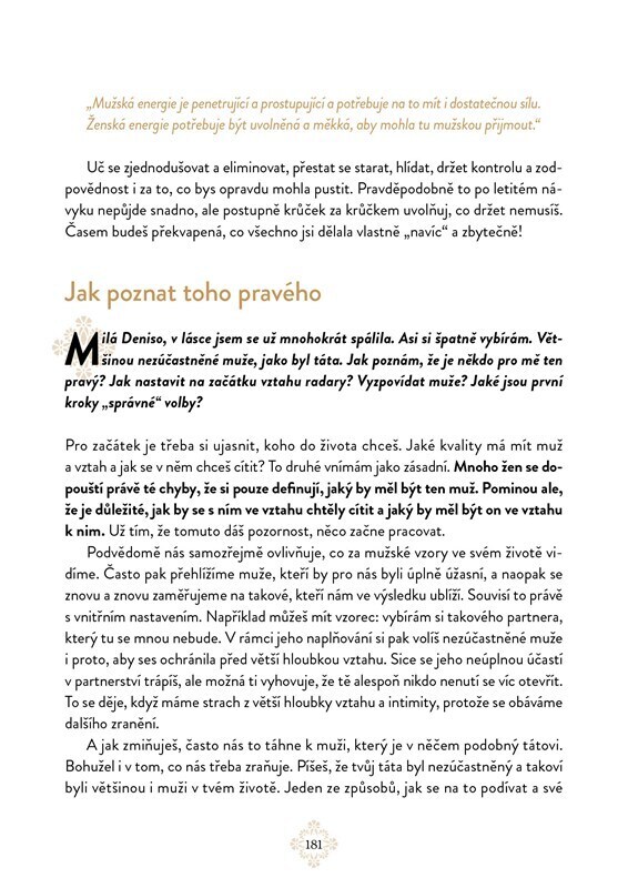 Mnoho žen se na mě obrací s přáním, aby jim partner věnoval více pozornosti. Aby jim lépe rozuměl. Nebo aby je respektoval a nepřekračoval jejich hranice. Chcete ve vztahu také více lásky a respektu? Pak se musíte nejdřív ponořit do vlastního nitra a vybudovat si láskyplný vztah k sobě. Tento...